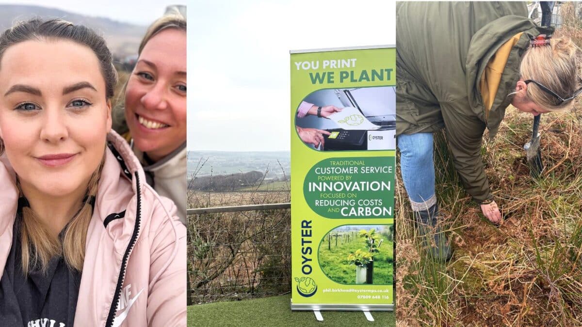 Last week, Rebekha and Alex from our Central Services team travelled to West Nab Farm in Holmfirth to join Oyster Managed Print Services for their annual Tree Planting Day, as part of Oyster’s “You Print, We Plant” initiative.